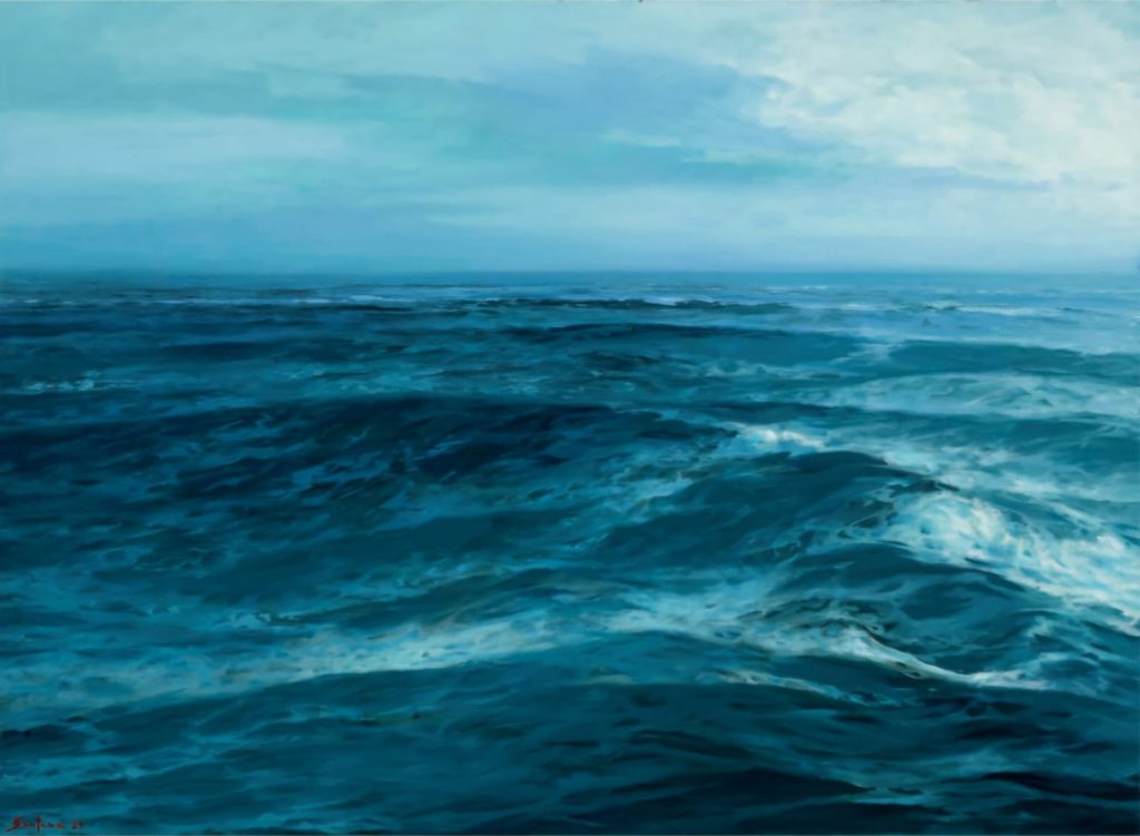 El mes de agosto cuenta con una marina de nuestro ilustre pintor Enrique Romero Santana. Este autor consagrado y reconocido como un ejemplo vivo universal del hiperealismo español ha colaborado con una imagen asombrosa de un océano Atlántico a punto de despertar. Su luz nos invade y hace que el receptor de la pintura sienta como el agua se desborda, envolviéndolo en esa naturaleza desbordante de azules.
