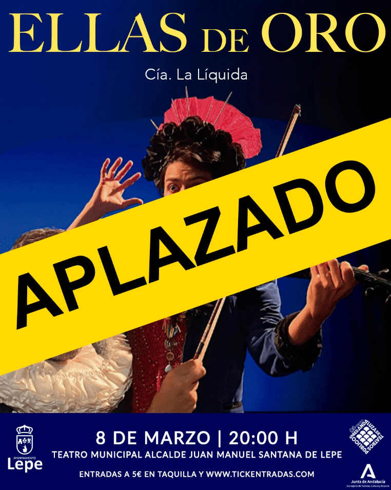 El espectáculo Ellas de Oro queda aplazado hasta nuevo aviso por problemas técnicos. Se notificará desde la cuenta de @area_de_cultura_lepe
