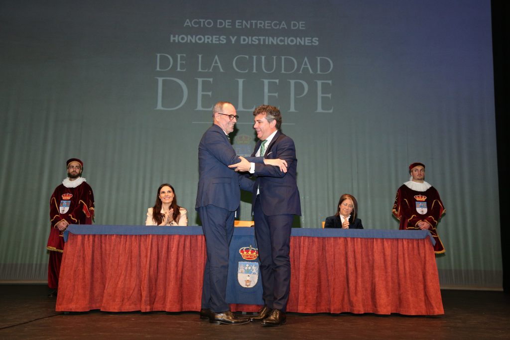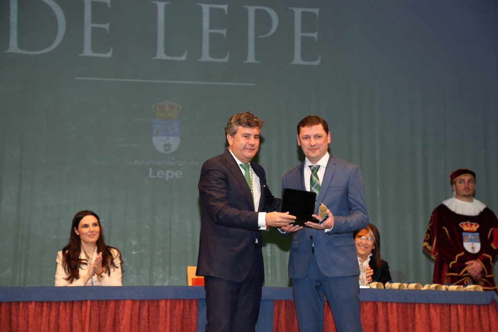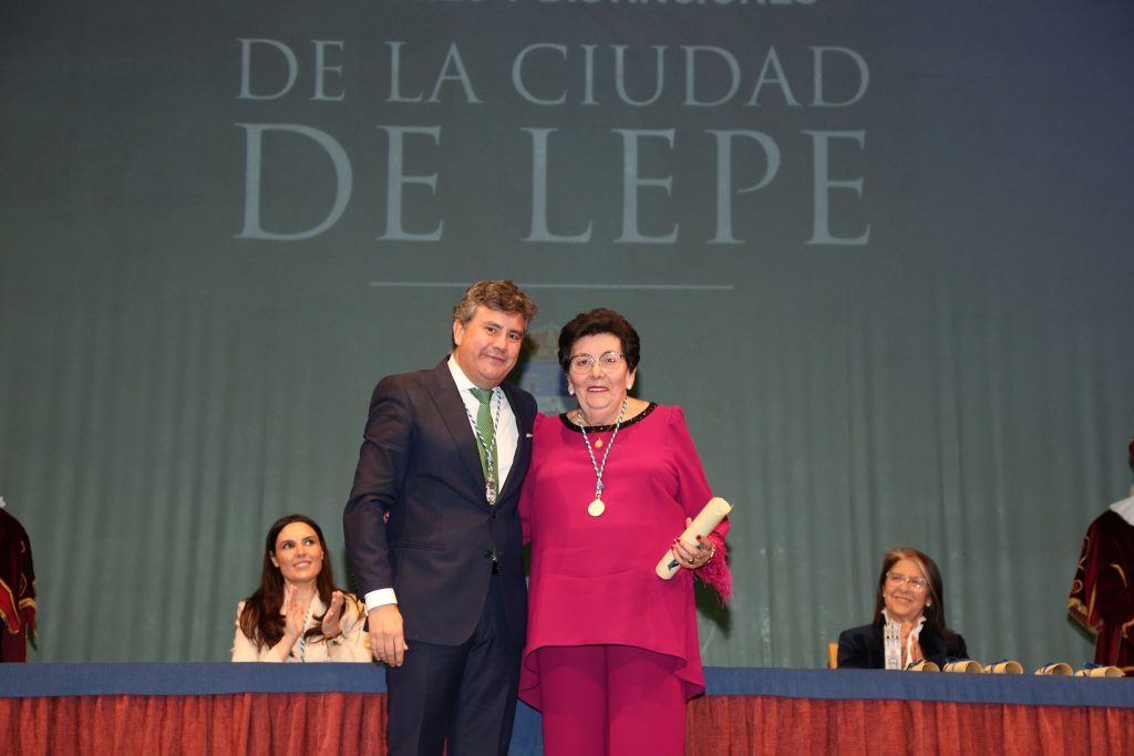 Las Medallas de la Ciudad se concedieron a la empresa lepera Rayman y al Club de Balonmano Ciudad de Lepe. Los Títulos de Hijo/a Predilecto/a se entregaron a Filomena González, reconocida por su inquebrantable solidaridad, y al matrono Manuel Prieto; mientras que los de Hijo/a Adoptivo/a se otorgaron a la bailaora Cristina Hoyos, al músico Manuel Diego Pareja-Obregón y al galerista John Holland. Además, se adjudicó un Rótulo en calle a José Oria, quien fuera alcalde de Lepe.