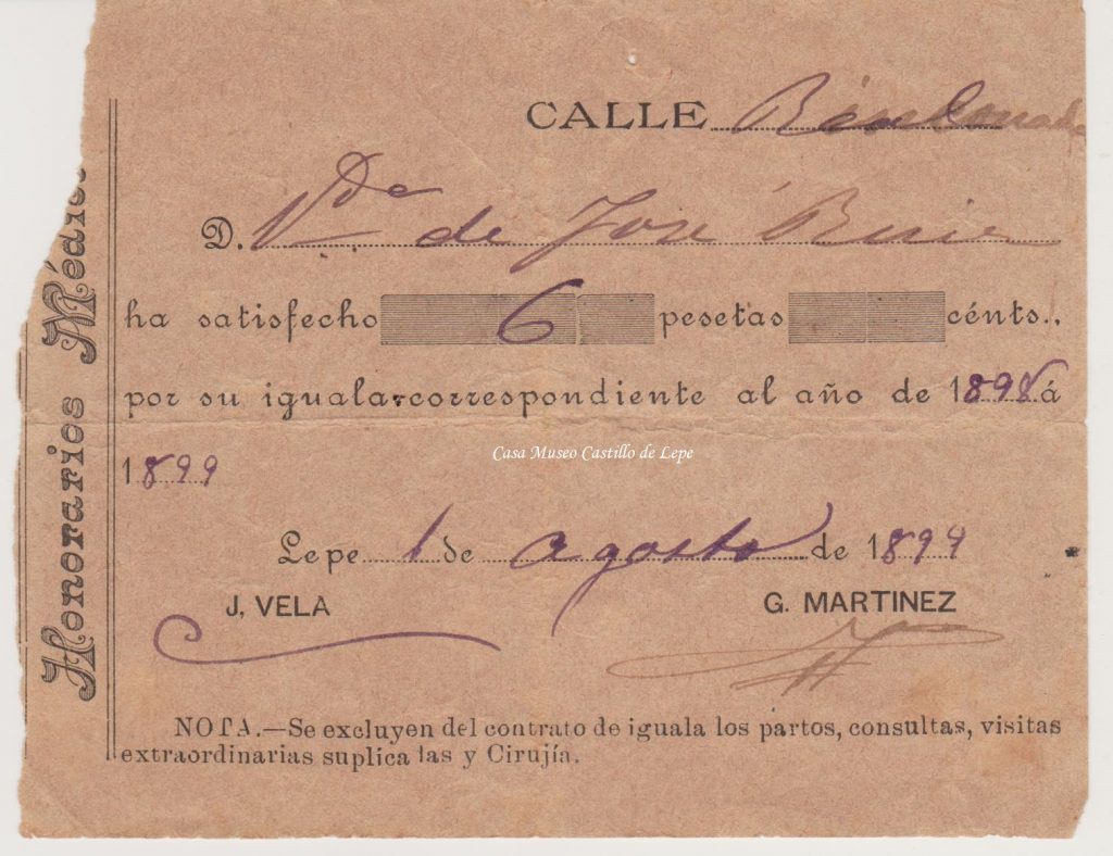 FOTO 5.- Recibo de pago de la Iguala para reconocimientos médicos durante el año 1.899.