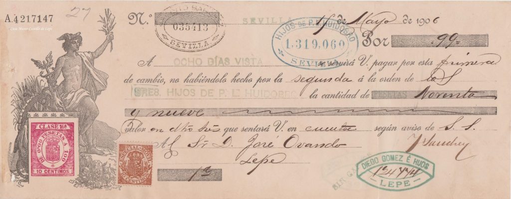 FOTO 7.- Letra de cambio por 99 pesetas, en el año 1.906.