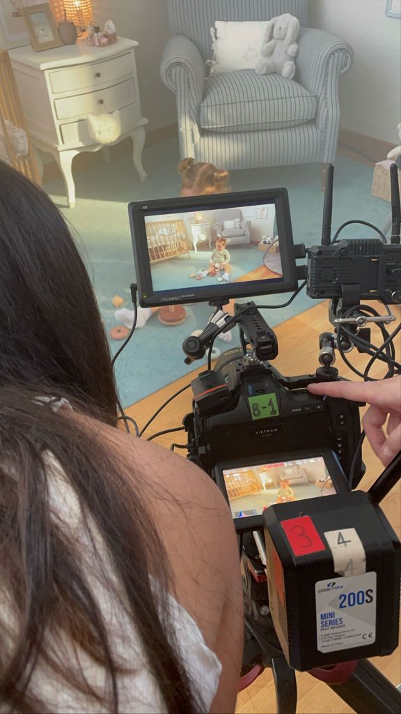 LM&JV:-Todo era nuevo para ella, los focos, estar rodeada de tanta gente a la vez pendiente de lo que hacía (el equipo de grabación y de la marca), pero todo fluyó, ella se sintió muy cómoda y a gusto. Jugó mucho, no paraba de moverse de un lado para otro y ponerse de pie en medio de la grabación, ella siempre ha sido muy inquieta y tenía que demostrarlo.